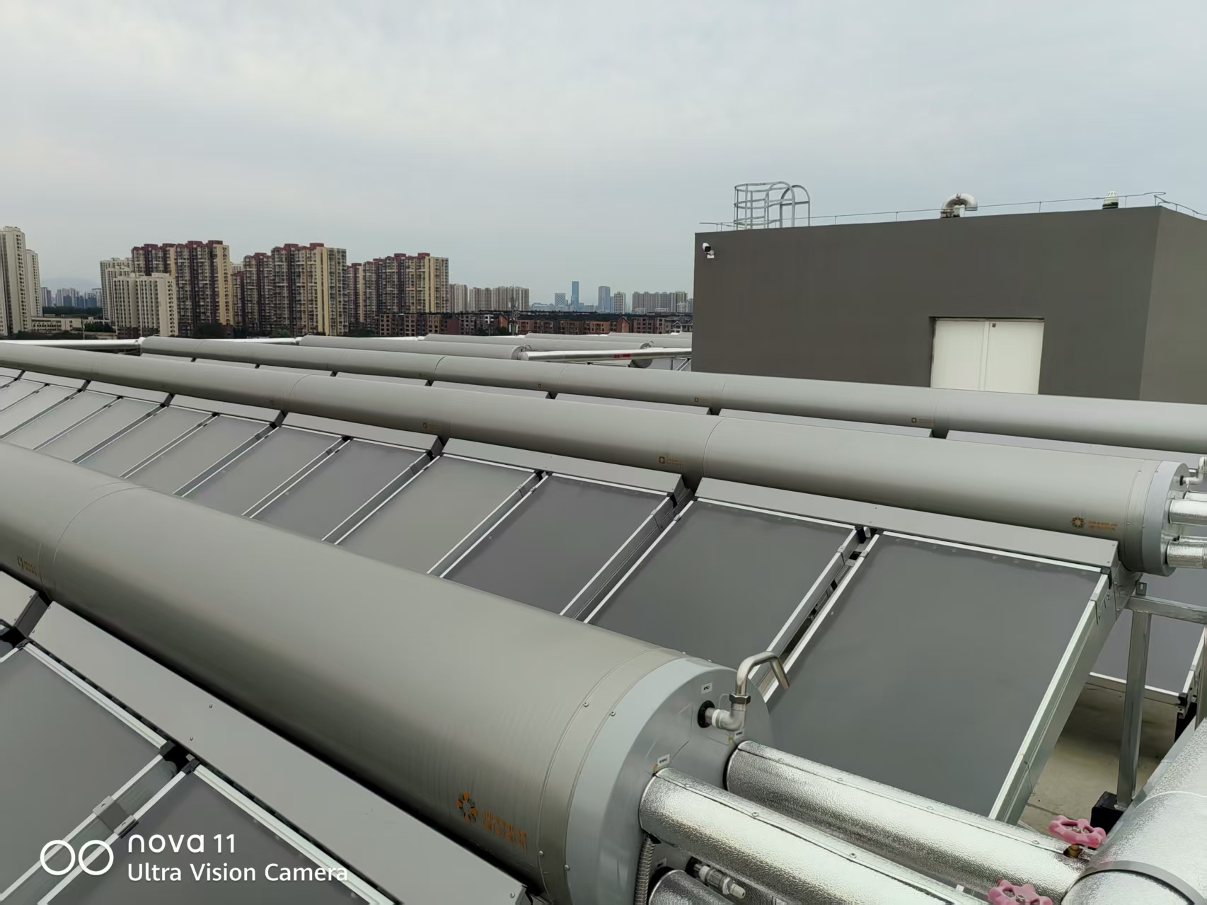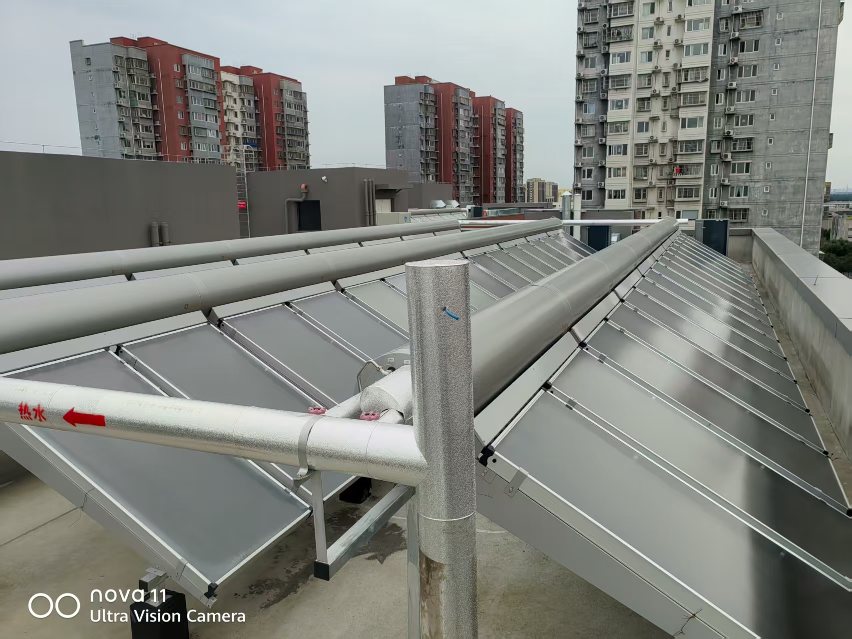 项目系统:防冻型平板无动力太阳能 + 分布式空气源热泵热水系统
